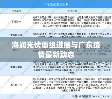 身为博客站长,时刻关注行业动态与社会热点是我们的职责所在,我将为大家分享关于海润光伏重组的最新新闻以及广东省疫情的实时动态。