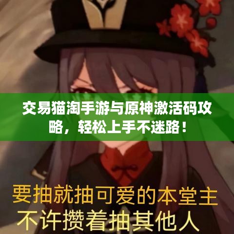 嘿,朋友!今天我们来聊聊交易猫淘手游和原神激活码交易的小秘密,你是不是也曾经为找不到合适的交易平台而烦恼?或者对激活码交易一头雾水?没关系,我来给你支支招,让你轻松玩转这些交易。