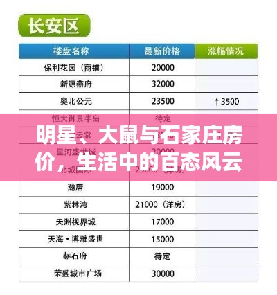 “明星到我家大鼠与石家庄最新房价”这个话题虽然看似复杂,但其实与我们生活息息相关,明星的选择象征着城市的发展潜力;大鼠的出现提醒我们要关注生活环境;而房价的涨跌则关乎我们的日常生活和经济生活,希望大家在生活中能多关注这些话题,同时也要找到适合自己的生活方式和发展方向。